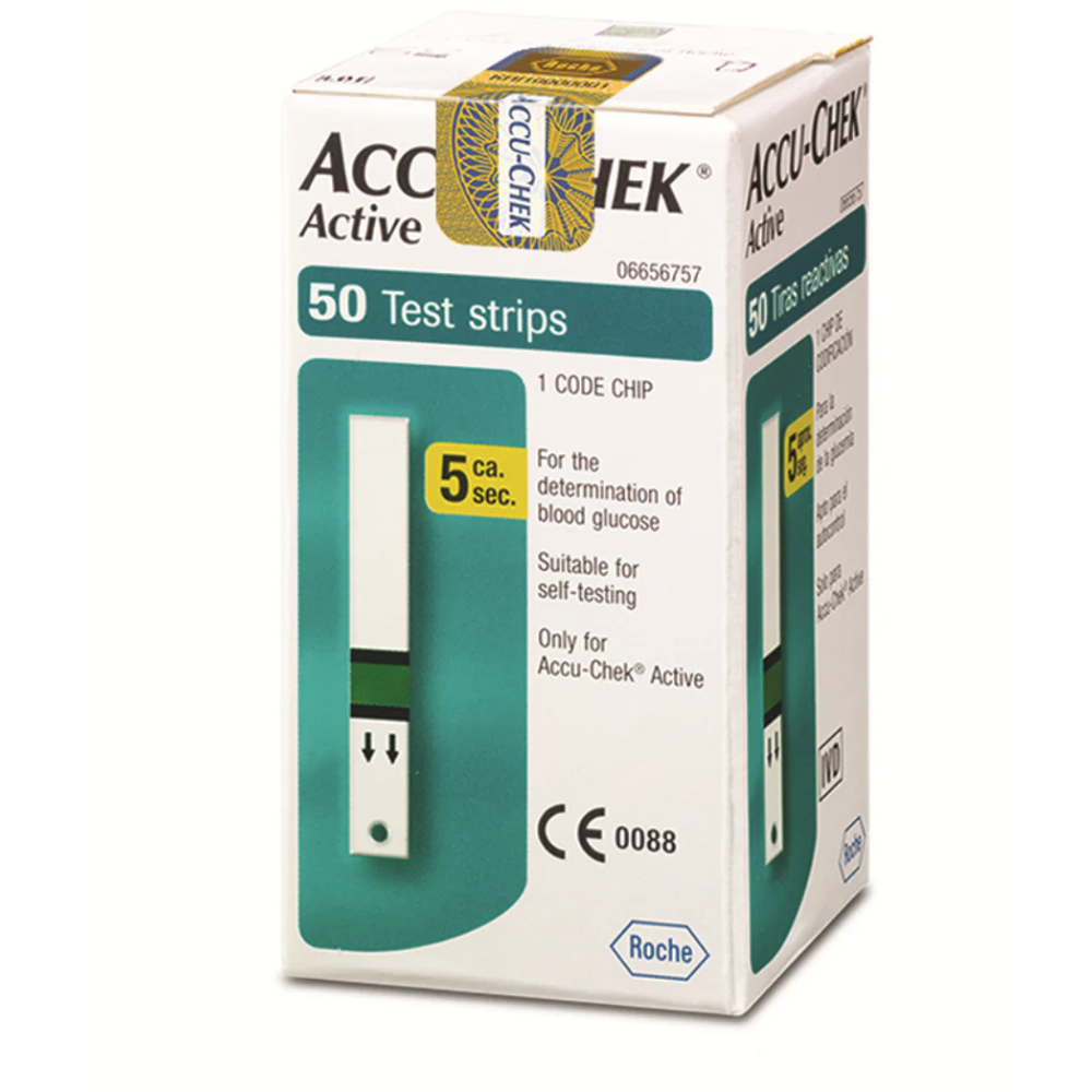 The Accu-Chek Active Blood Glucose Meter is a compact, user-friendly glucometer intended for self-testing of blood sugar levels. Key features include: