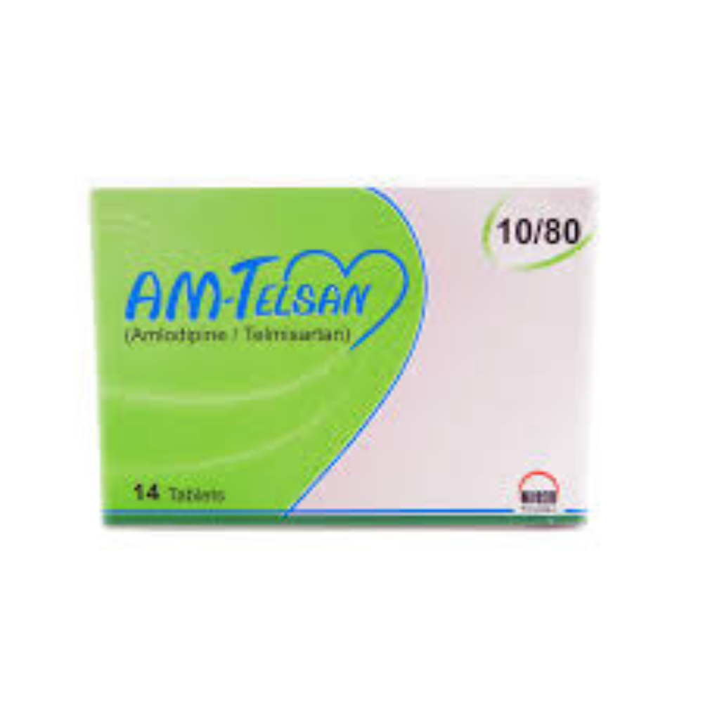 Am-Telsan 10/80 mg Tablet is a fixed-dose combination medication containing Amlodipine 10 mg + Telmisartan 80 mg.