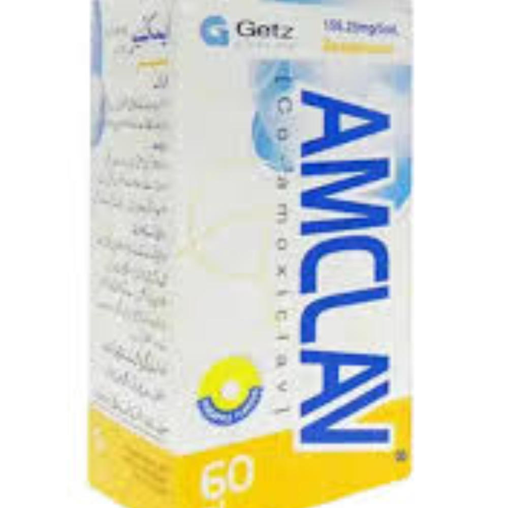 AMCLAV 156.25MG SYRUP is an antibiotic combination of Amoxicillin (125mg) and Clavulanic Acid (31.25mg). It is used to treat a wide range of bacterial infections including those of the respiratory tract, ear, throat, urinary tract, and skin. Amoxicillin kills bacteria, while Clavulanic Acid prevents resistance, making the antibiotic more effective. This syrup is commonly prescribed for children under medical supervision.