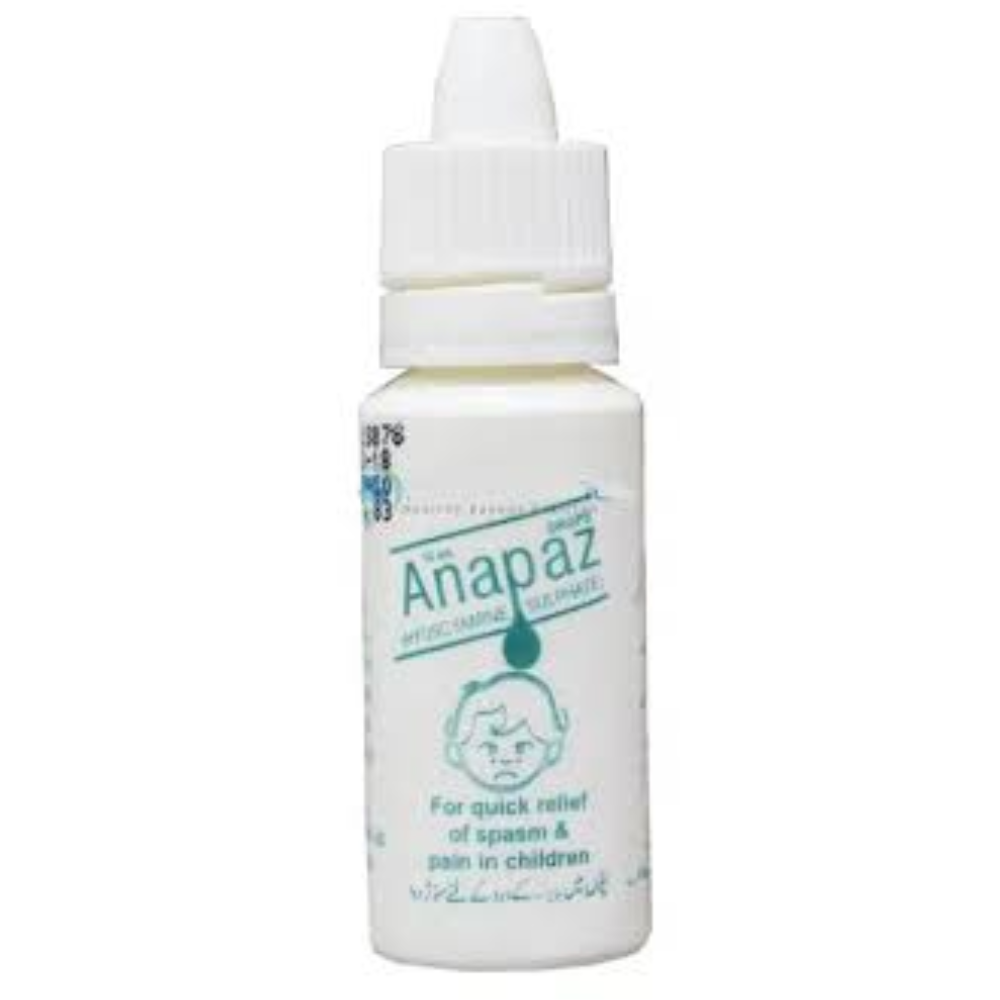 Anapaz Drops contain Dicyclomine Hydrochloride, an antispasmodic medicine used to relieve abdominal cramps, colic, and spasms of the digestive tract. It works by relaxing the smooth muscles of the gut, providing quick relief from pain and discomfort.