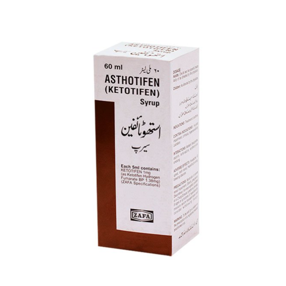 Asthotifen Syrup helps prevent and relieve asthma and allergic symptoms. It reduces inflammation in the airways, easing breathing. Useful for children and adults with seasonal allergies or mild asthma.