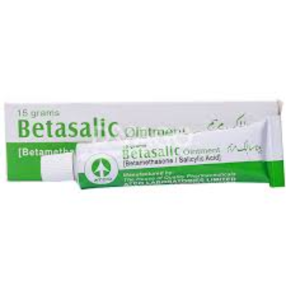 Betasalic Ointment is a topical medicine used for the treatment of various skin conditions. It combines Betamethasone (a corticosteroid that reduces redness, swelling, and itching) with Salicylic Acid (a keratolytic agent that helps remove dead skin and enhances absorption of the steroid).