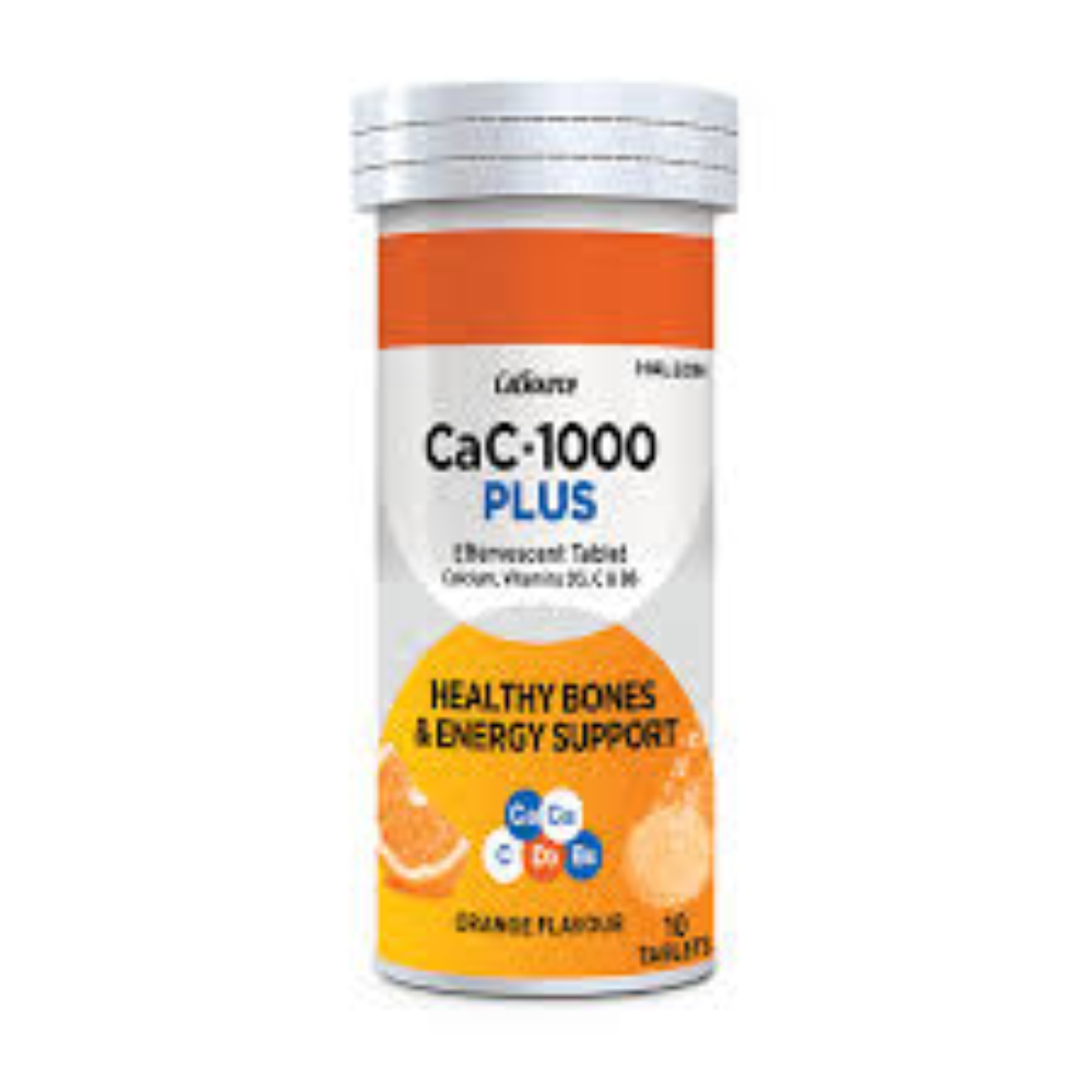 CaC-1000 Plus (Orange)” is an effervescent calcium supplement tablet with added vitamins, produced by Haleon Pakistan (previously under GlaxoSmithKline).