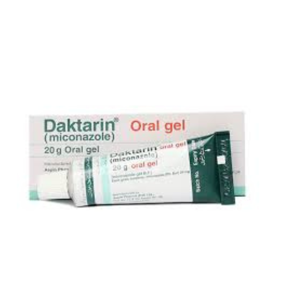 Daktarin Oral Gel contains Miconazole, an antifungal medicine used to treat fungal and yeast infections in the mouth, throat, and gastrointestinal tract (such as oral thrush caused by Candida). It works by damaging the fungal cell membrane, stopping the growth of fungi. The gel formulation allows it to stick to the lining of the mouth and throat, providing effective relief from symptoms like white patches, soreness, redness, and