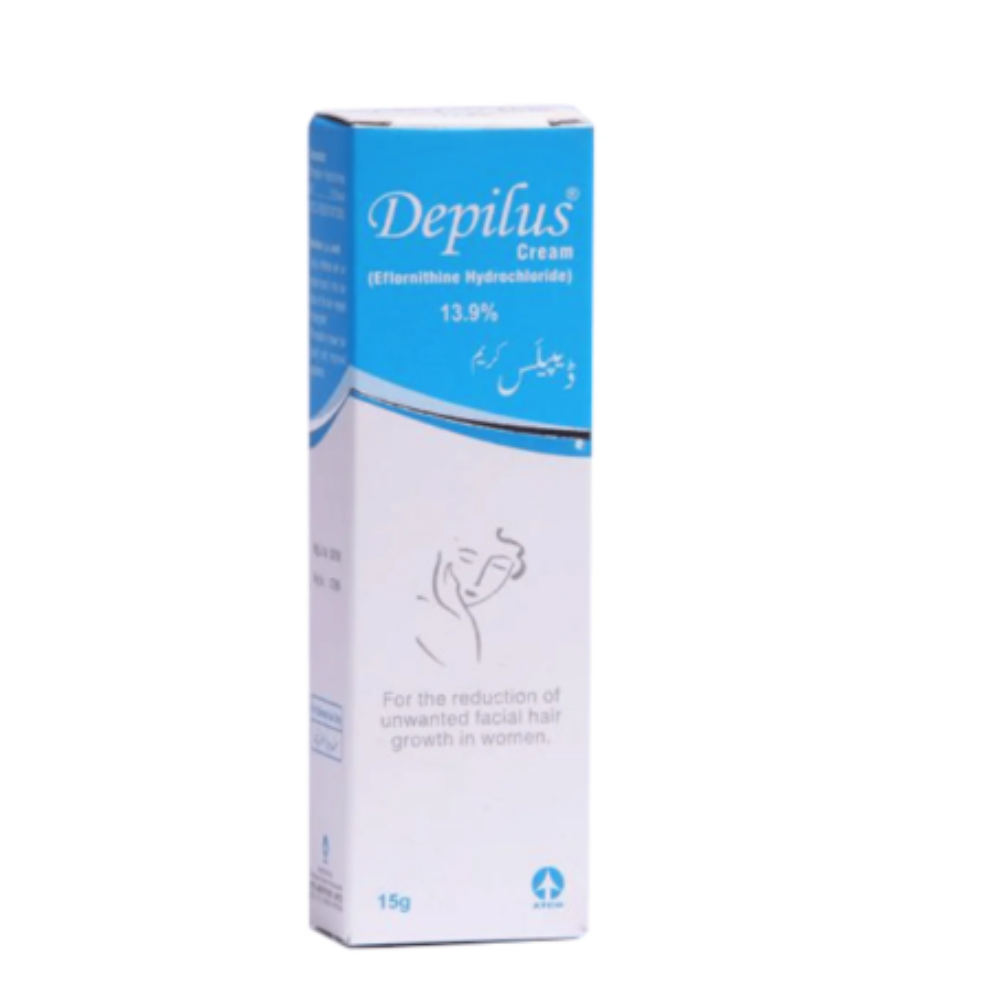 Depilus Cream is a dermatological product used to treat unwanted facial hair in women. It works by slowing down hair growth when applied regularly. The cream is gentle on the skin and helps improve appearance. A cosmetic and medical solution for hair reduction.