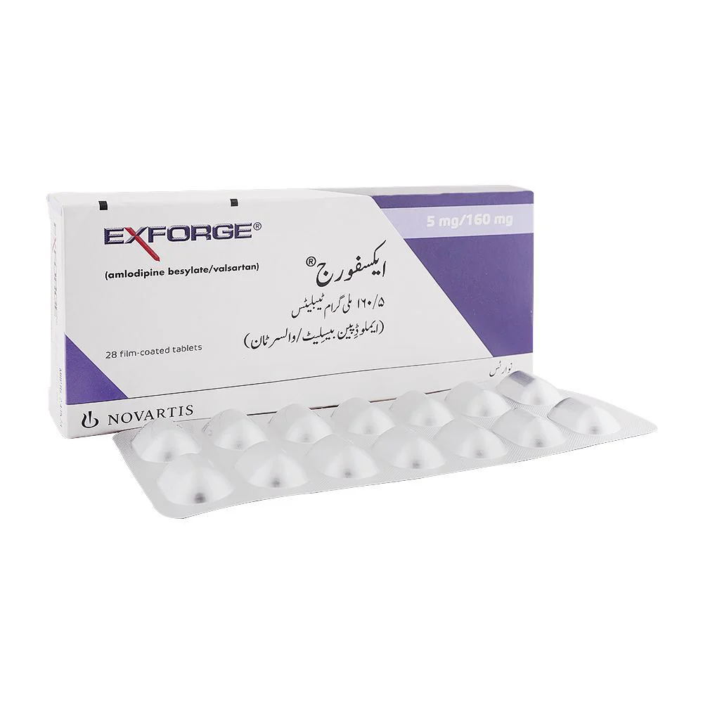 Exforge 5/160mg tablet is a combination antihypertensive medication containing Amlodipine and Valsartan.