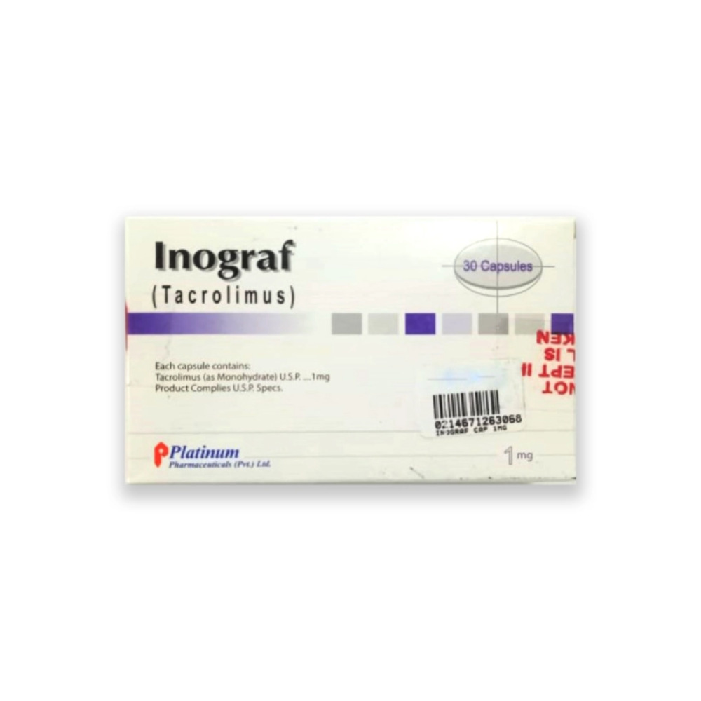 Inograf 1mg Capsule contains Sirolimus 1mg, an immunosuppressant used to prevent organ transplant rejection, especially in kidney transplant patients. It works by suppressing the immune system to reduce the risk of organ rejection while maintaining overall patient safety.