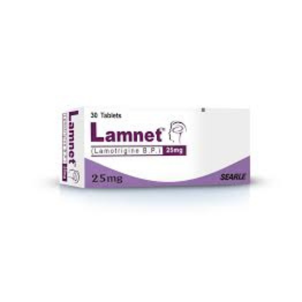 Lamnet 25mg Tablet contains Lamotrigine 25mg, an anticonvulsant medication used to control seizures in epilepsy and stabilize mood in bipolar disorder. It works by modulating neurotransmitter activity in the brain to reduce the frequency and severity of seizures or mood swings.