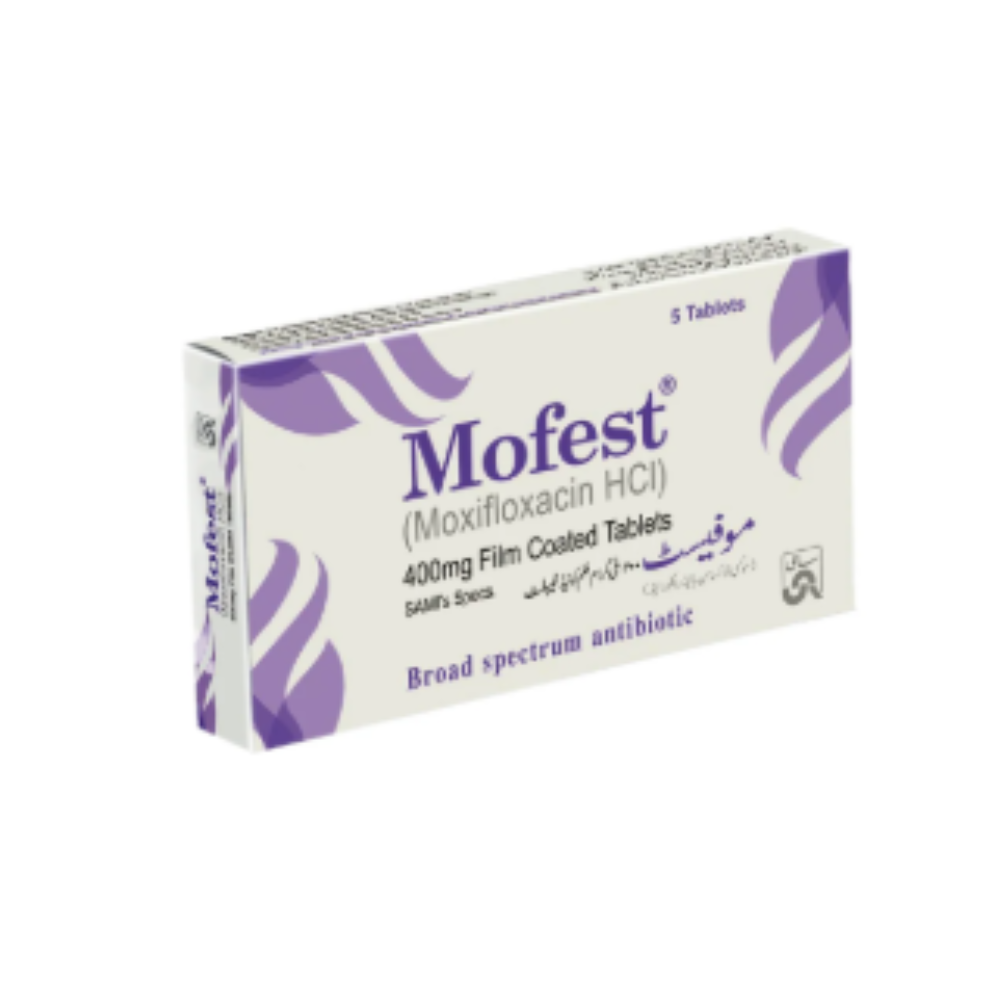 Mofest 400mg tablet contains Moxifloxacin, used to treat a variety of bacterial infections such as respiratory and skin infections.