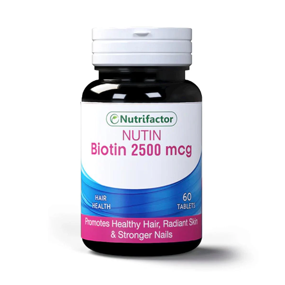 NF Biotin 2500 µg tablet is used to support healthy hair, skin, and nails and to prevent biotin deficiency.
