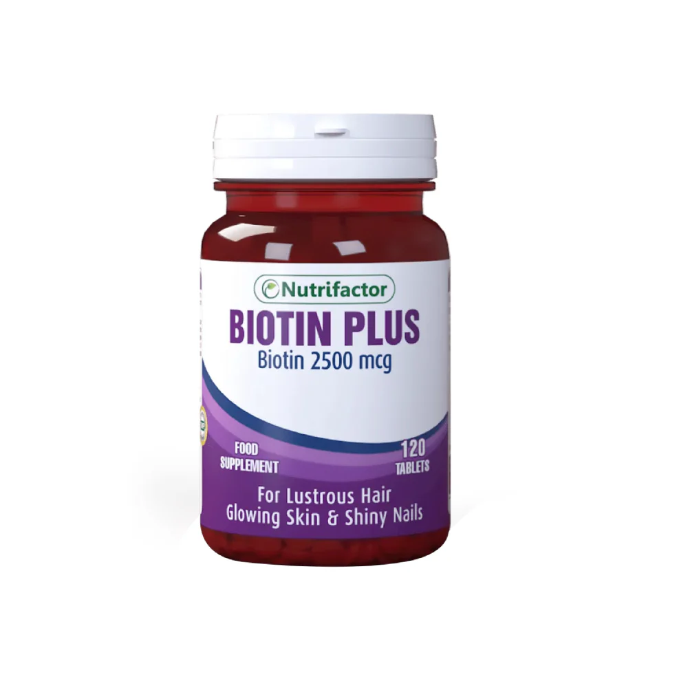 NF Biotin contains Biotin (Vitamin B7) 2500mcg, a water-soluble vitamin from the B-complex group. It plays a key role in energy metabolism and is especially important for healthy hair, skin, and nails. It is commonly used to help reduce hair thinning, brittle nails, and skin dryness, and also supports nervous system and metabolic health.