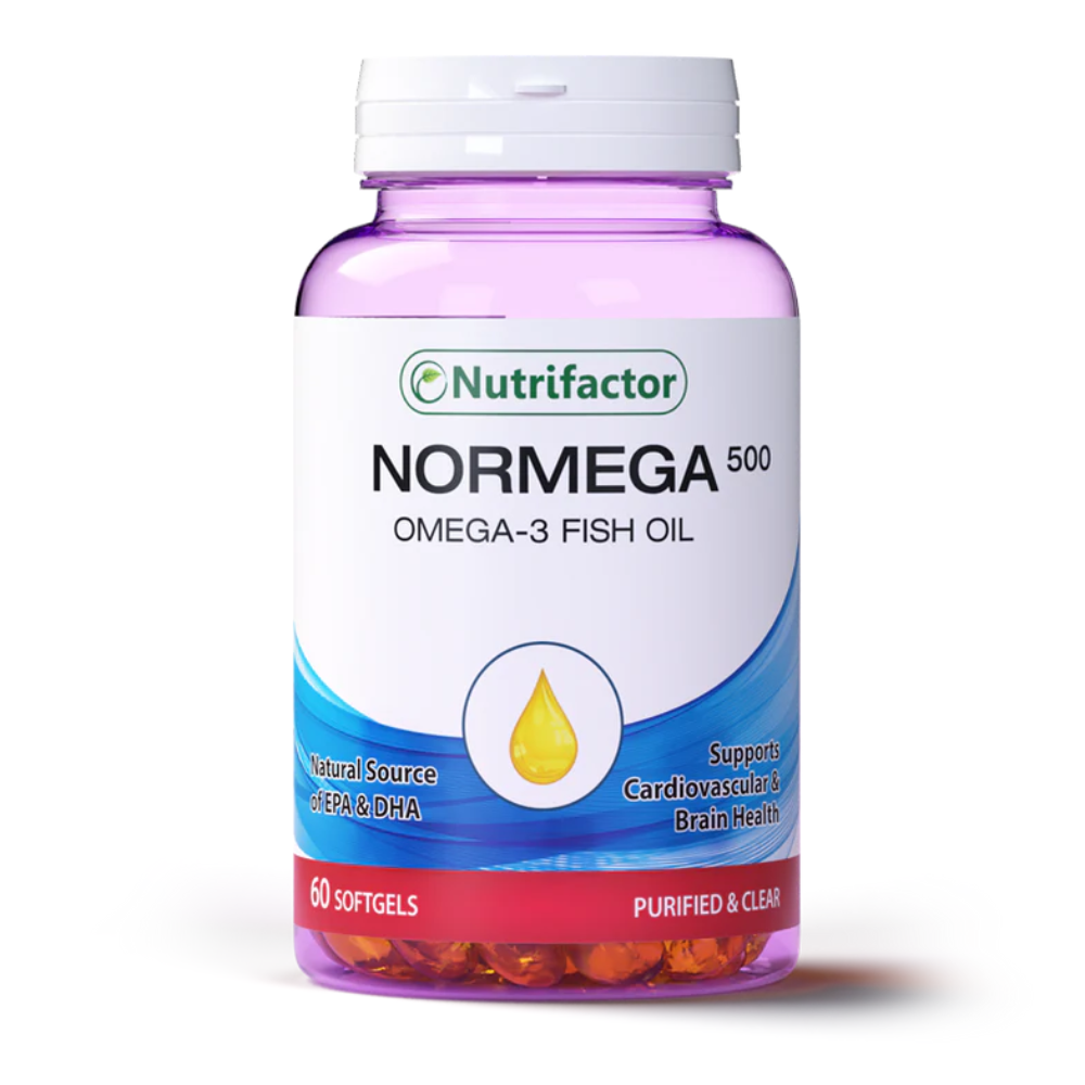 NF Normega 500mg Capsules are a dietary supplement containing Omega-3 fatty acids (EPA & DHA), which support cardiovascular health, brain function, and joint wellness. These capsules help maintain healthy cholesterol levels, improve cognitive performance, and promote overall wellness. They are suitable for individuals seeking to supplement their diet with essential fatty acids.