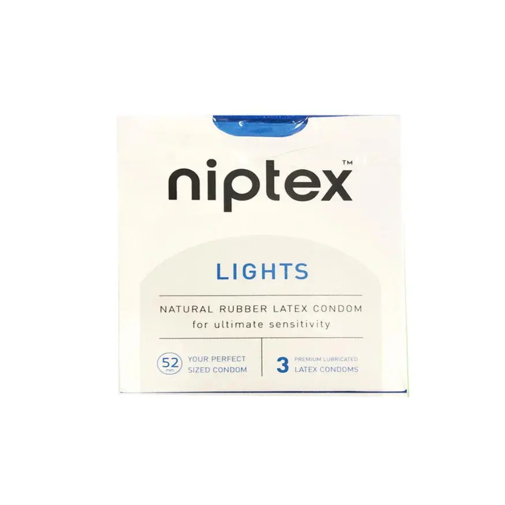 Niptex Condom Lights is a thinner latex condom designed to provide a more natural feeling and increased sensitivity during intercourse.