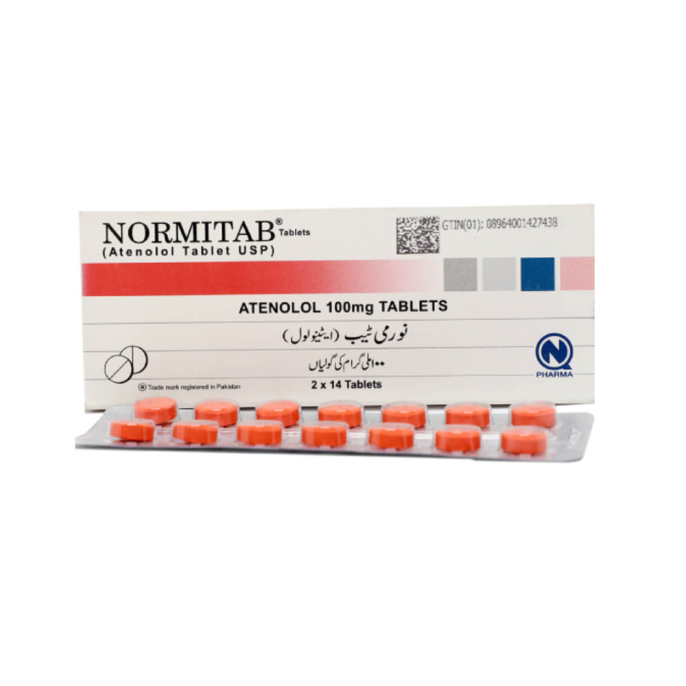 Normitab 100mg tablet contains Metoprolol, used to manage high blood pressure, chest pain (angina), and certain heart rhythm disorders.