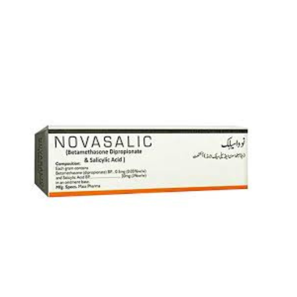 Novasalic Ointment contains Betamethasone (a corticosteroid) and Salicylic Acid (a keratolytic agent).