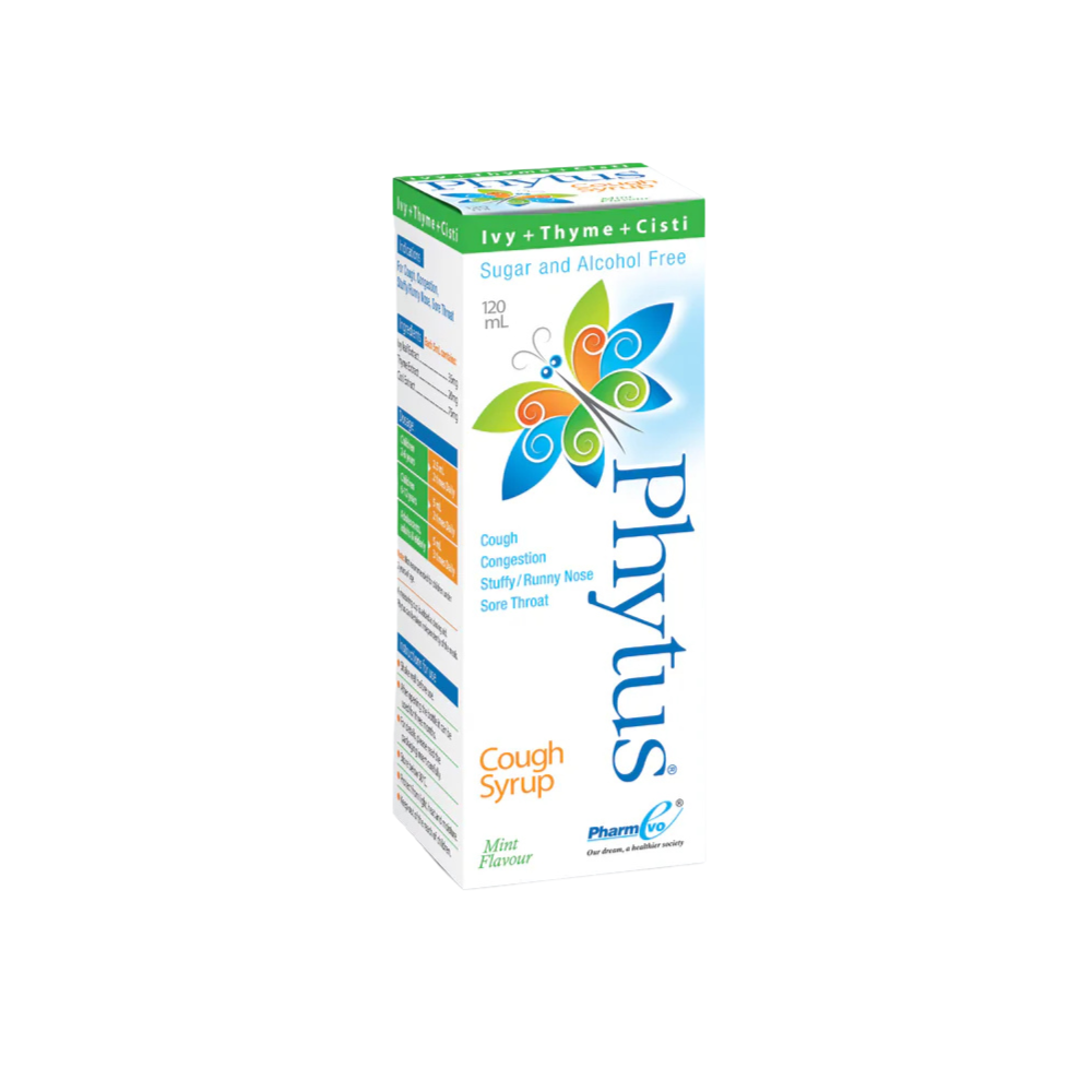 Phytus Syrup 120ml is a herbal-based cough remedy formulated with ivy leaf extract to provide effective relief from chesty and dry coughs. It works by loosening mucus, easing throat irritation, and supporting natural respiratory function. Alcohol-free and non-drowsy, it is suitable for both adults and children as directed by a physician.