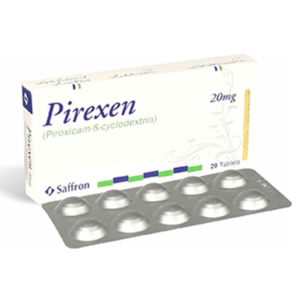 Pirexen contains Piroxicam 20 mg, a nonsteroidal anti-inflammatory drug (NSAID) from the oxicam group.