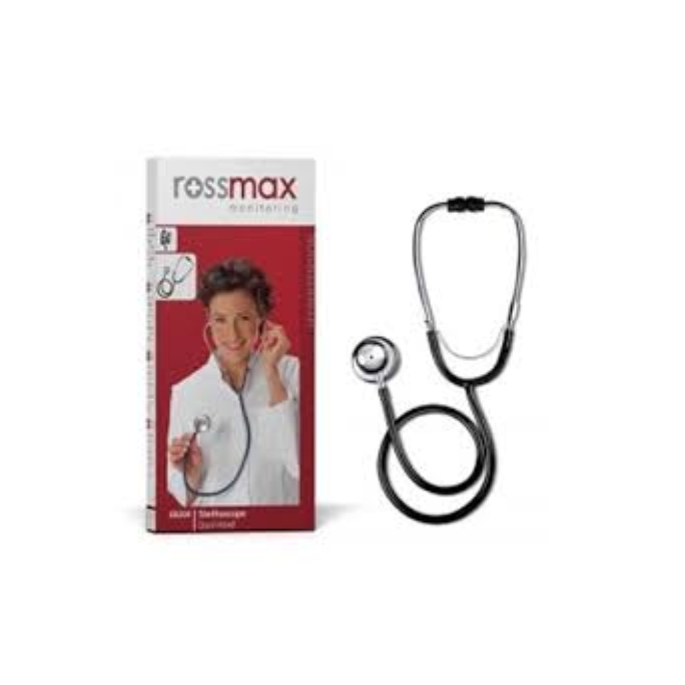ROSSMAX STETHOSCOPE (EB-200) is a high-quality medical instrument used to listen to heart, lung, and other body sounds. It features clear acoustic performance and a comfortable design for accurate and reliable auscultation. Suitable for doctors, nurses, and medical students, it ensures precise diagnosis and easy handling. Durable and lightweight, it is ideal for both clinical and home use.