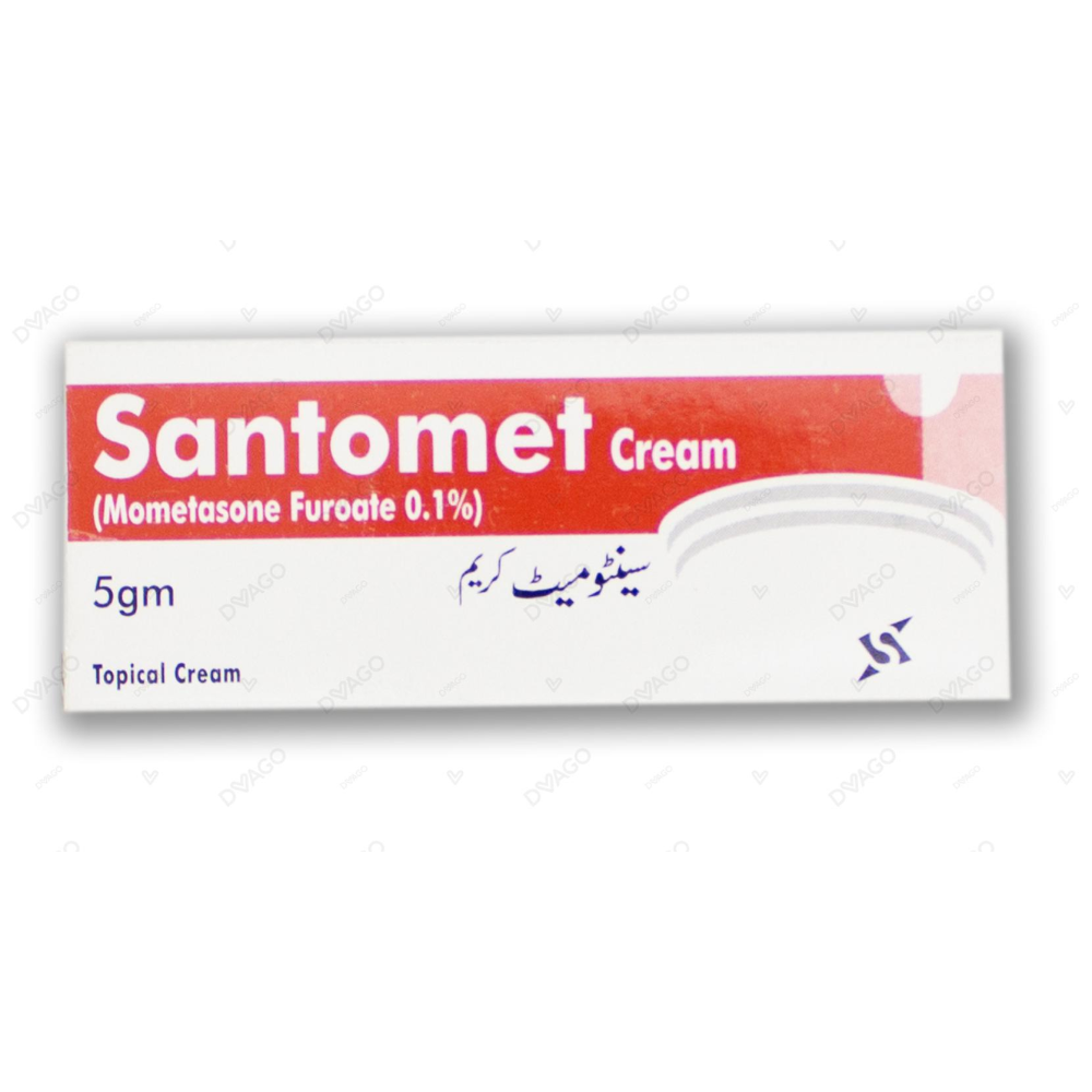 SANTOMET 0.1% 5GM CREAM contains the active ingredient mometasone. It is a potent topical corticosteroid used to relieve the symptoms of various skin conditions that are responsive to corticosteroids. This cream helps to reduce inflammation, redness, and itching associated with conditions like eczema, psoriasis, and dermatitis. It works by blocking the production of certain chemical messengers in the skin that cause these inflammatory and allergic reactions.