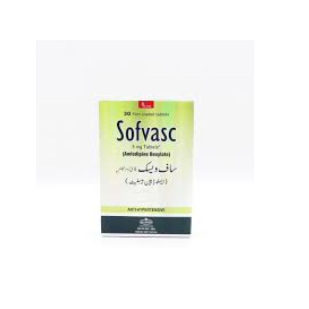 Sofvasc 5mg Tablet contains amlodipine, a calcium channel blocker used for the treatment of high blood pressure (hypertension) and angina (chest pain). It works by relaxing blood vessels, improving blood circulation, and reducing strain on the heart. This helps lower the risk of heart attacks and strokes.