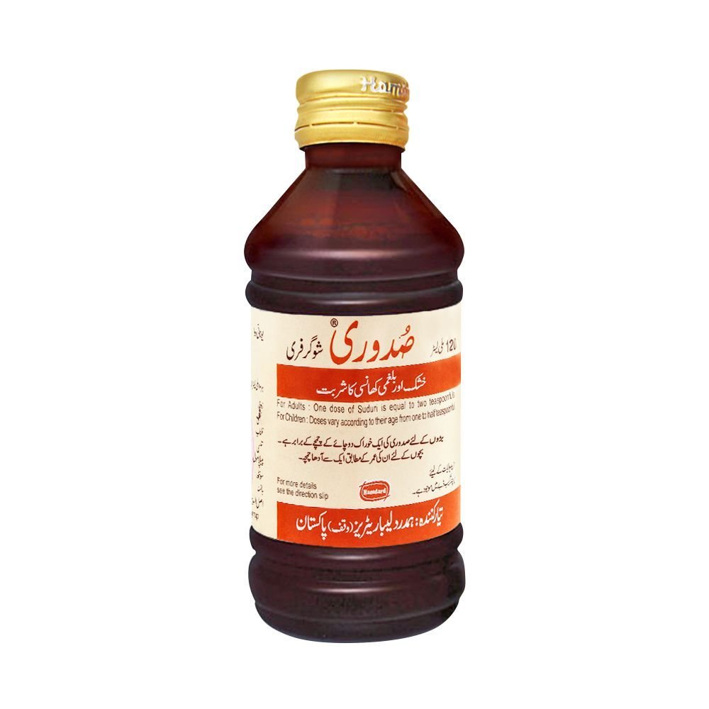Suduri Syrup (Sugar Free) is a herbal/expectorant cough syrup formulated to provide relief from cough, sore throat, and respiratory irritation. It is made with natural herbal extracts that help soothe the throat, loosen mucus, and ease breathing. Being sugar-free, it is suitable for diabetic patients or those avoiding sugar intake.