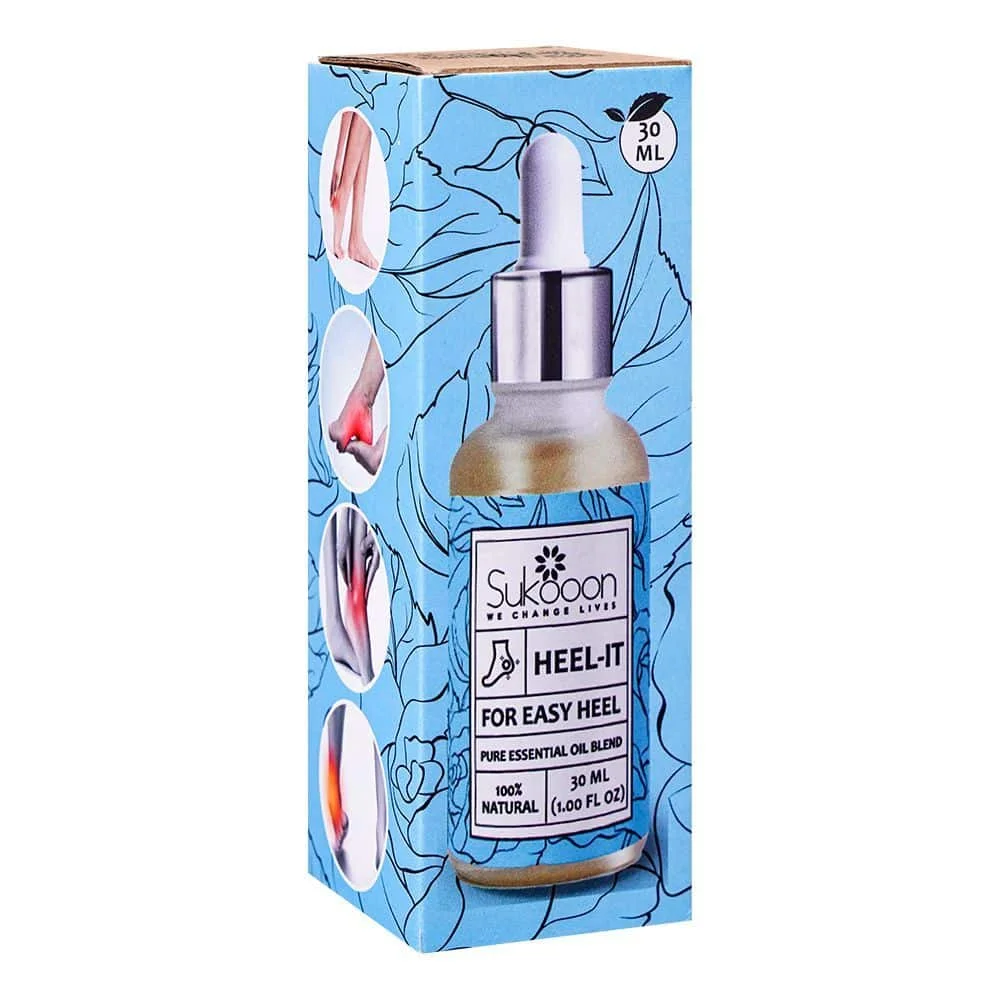 Sukoon Heel It is a herbal topical oil/spray formulated to provide relief from heel pain, cracks, and stiffness. It contains natural herbal extracts and essential oils that help soften hardened skin, reduce pain, and support healing. Regular use promotes comfort in walking and repair of dry, damaged heels.