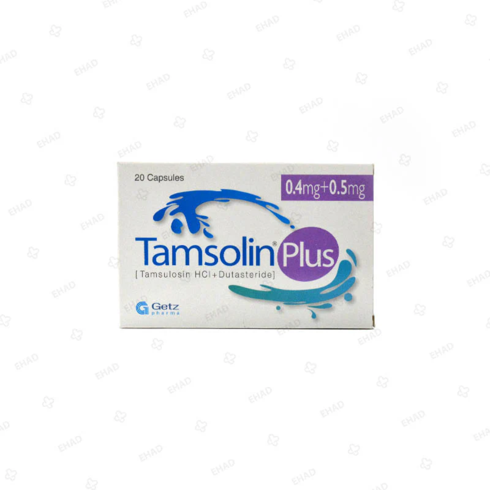 TAMSOLIN PLUS 0.4MG/0.5MG CAP is a combination medication used to treat the symptoms of benign prostatic hyperplasia (BPH), also known as an enlarged prostate. It contains two active ingredients: tamsulosin (0.4mg) and dutasteride (0.5mg). Tamsulosin is an alpha-blocker that relaxes the muscles in the prostate and bladder neck, improving urine flow. Dutasteride is a 5-alpha reductase inhibitor that shrinks the enlarged prostate over time. The combination provides both immediate symptomatic relief and long-term prostate size reduction.