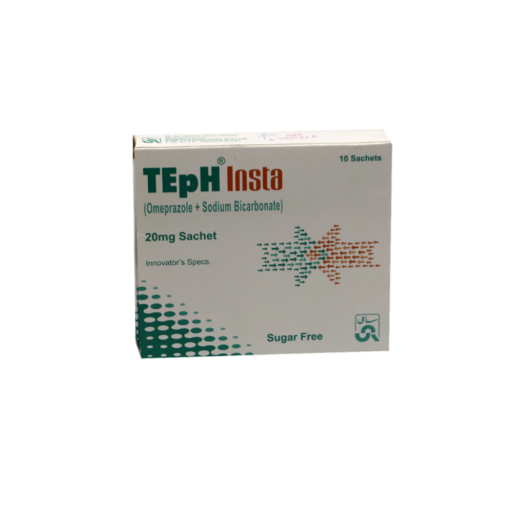 Teph Insta 20 mg Sachet contains Esomeprazole in a fast-dissolving form for quick relief from acidity, heartburn, and gastric discomfort.