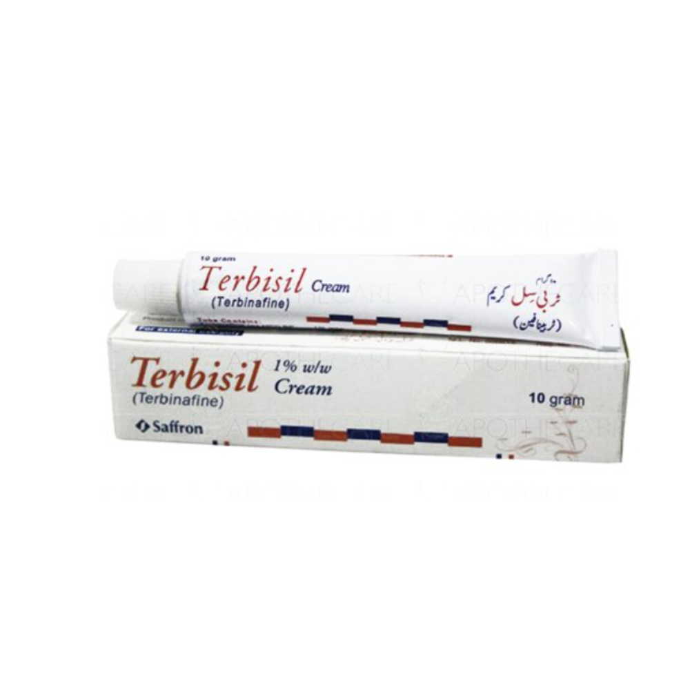 Terbisil 10 g Cream with Terbinafine is used to treat fungal skin infections like ringworm and athlete’s foot.