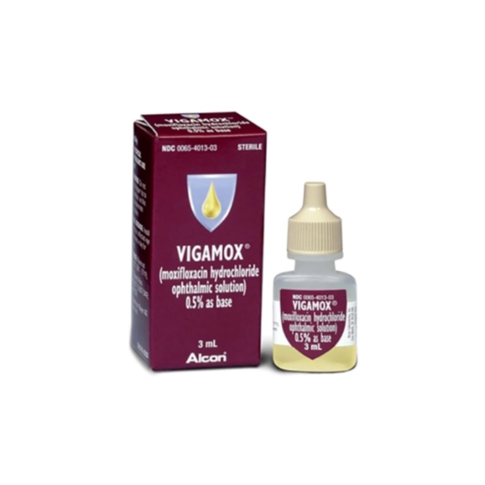 VIGAMOX EYE DROP 5ML is an ophthalmic solution containing the active ingredient moxifloxacin. It is a fluoroquinolone antibiotic used to treat bacterial infections of the eye, most commonly bacterial conjunctivitis (pink eye). It works by stopping the growth of bacteria by inhibiting key enzymes necessary for their DNA replication and repair. This action kills the bacteria and helps to clear the infection. It is not effective for treating viral or fungal eye infections.