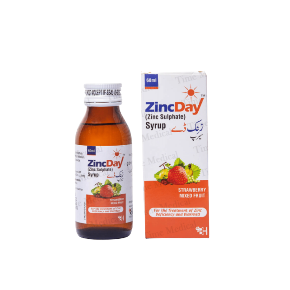 ZINC DAY syrup is used for children to treat or prevent zinc deficiency. It helps boost immunity, appetite, and growth. The syrup is taken orally using a measuring spoon. It ensures healthy development and recovery during illness.
