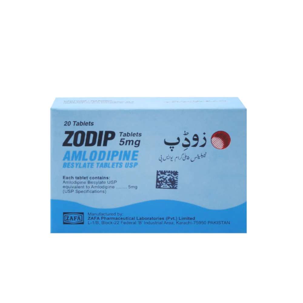 ZODIP 5mg is used to treat high blood pressure and angina. It relaxes blood vessels, allowing blood to flow more easily. Taken as an oral tablet, it helps prevent strokes and heart problems. Regular use improves heart health and circulation.
